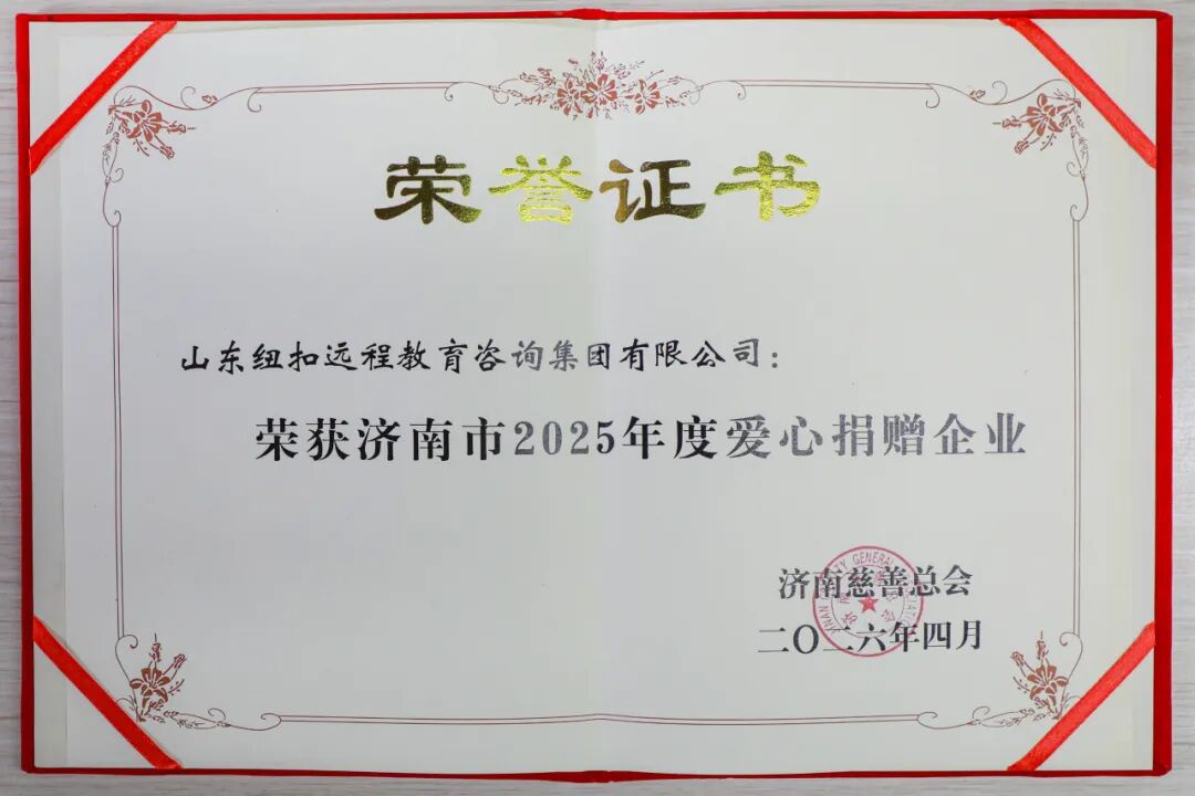 践行公益初心 守护心灵成长——纽扣家庭教育集团荣获济南市2025年度爱心捐赠企业