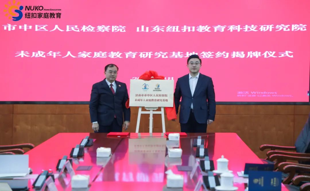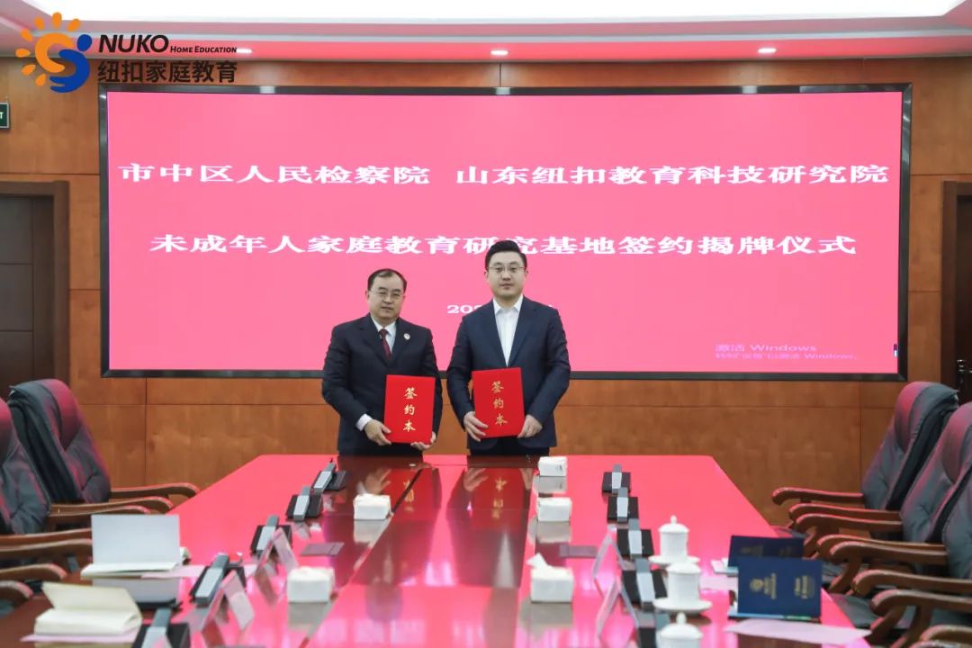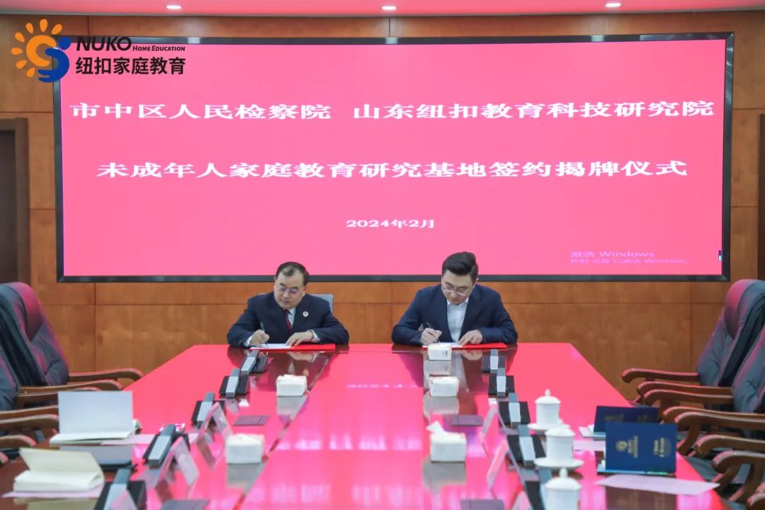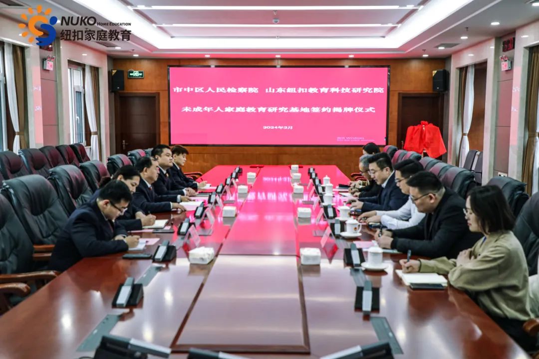 为积极探索专业化、规范化未成年人家庭教育指导工作机制,推动未成年人权益保护和犯罪预防工作。2024年2月1日,市中区检察院与纽扣教育科技研究院正式签约并揭牌成立未成年人家庭教育研究基地。在仪式上,区检察院党组书记、检察长赵性雨与纽扣家庭教育集团董事长穆居康共同为基地揭牌,并签署了《未成年人家庭教育研究协议》。区检察院党组成员、副检察长王波主持签约仪式,第三检察部负责人张瑞冬,第三检察部检察官助理薛涵、第三检察部蔡洋,纽扣教育科技研究院院长任红磊,纽扣青少年心理成长基地校长黄杰,纽扣家庭教育集团党支部书记张赫文共同出席并见证了这一重要时刻。